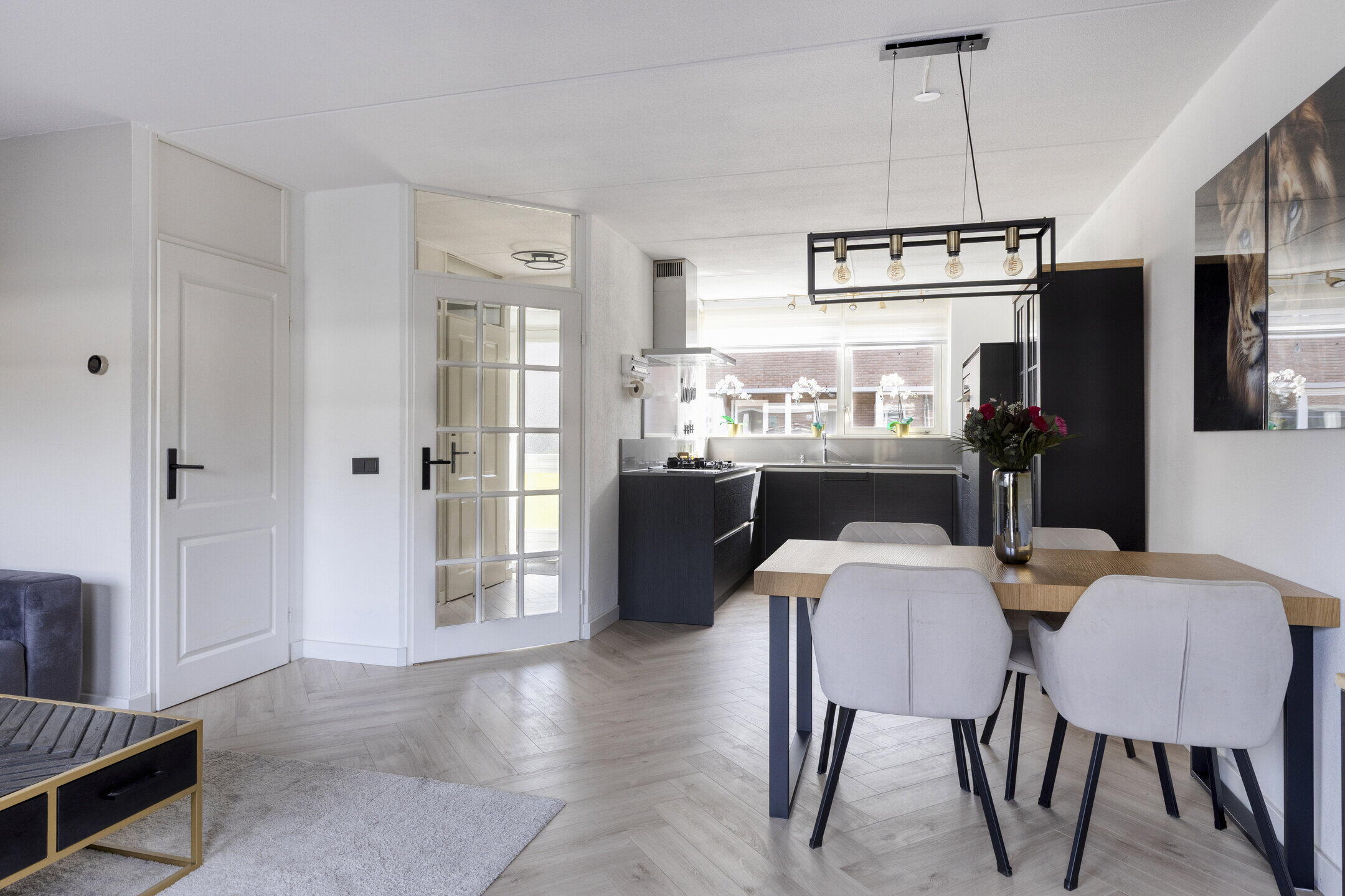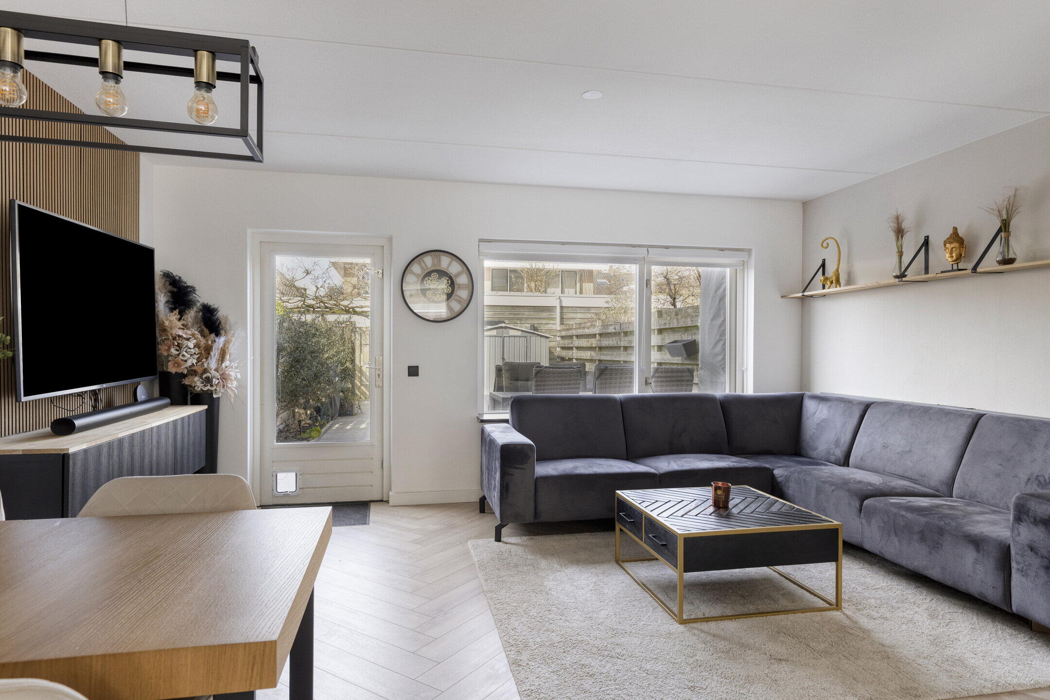 Bij binnenkomst in de woning komt u in de hal terecht, waar u de meterkast, het toilet en de trap (2025) naar de eerste verdieping vindt. De lichte woonkamer is een van de hoogtepunten van deze woning. Met een mooie visgraat laminaatvloer (2024), een praktische trapkast en openslaande deur naar de achtertuin, is deze ruimte perfect voor zowel gezellige familieavonden als ontspannen momenten. De lichtinval zorgt voor een warme en uitnodigende sfeer.