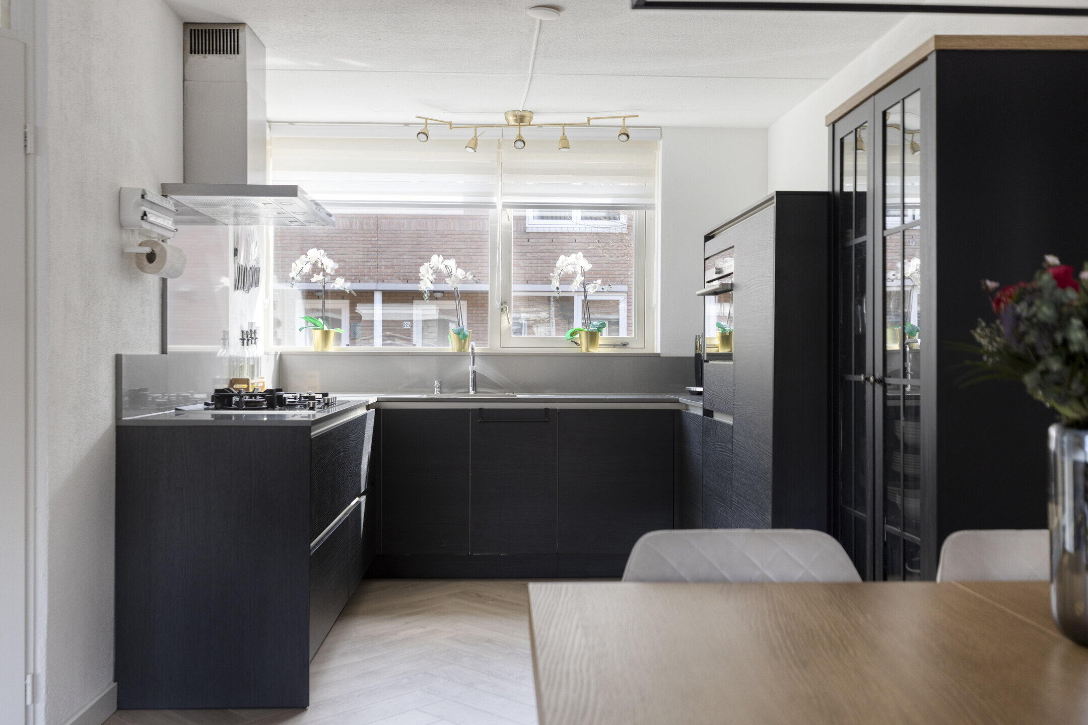 Aan de voorzijde van de woning bevindt zich de moderne keuken. Deze keuken is uitgerust met diverse inbouwapparatuur, waaronder een kookplaat, afzuigkap, combimagnetron, koelkast, vaatwasser en zelfs een Quooker. Koken wordt in deze keuken een waar genot, zodat u met gemak de lekkerste maaltijden voor uw gezin kunt bereiden.
